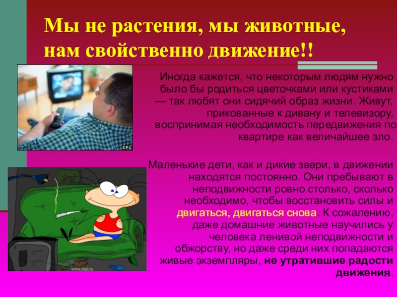 Слайд 8Мы не растения, мы животные, нам свойственно движение!!