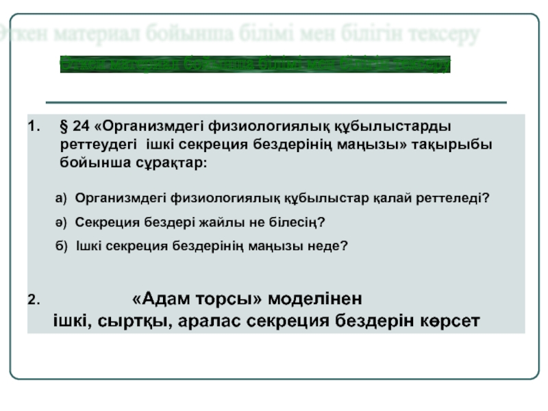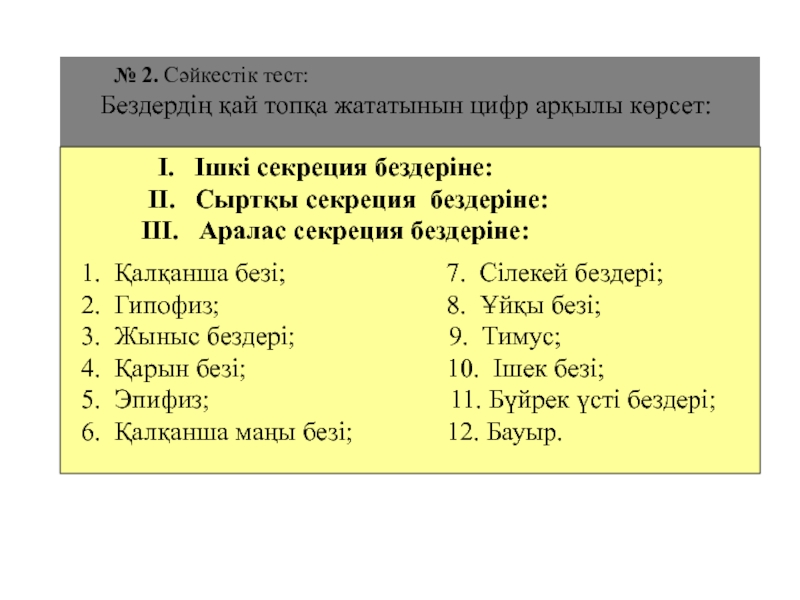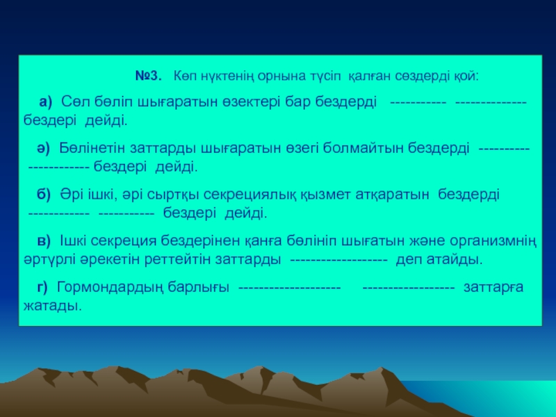 № 3. Көп нүктенің орнына қойылатын сөздер: а) сыртқы секреция;