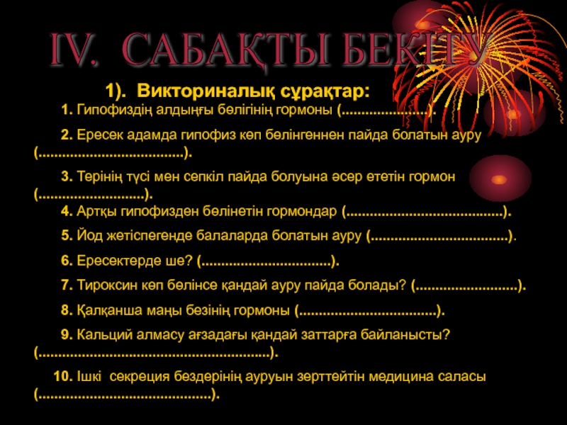ІV. САБАҚТЫ БЕКІТУ
