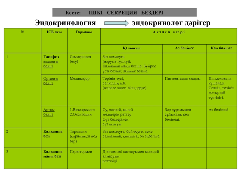 І. Ішкі секреция бездеріне: