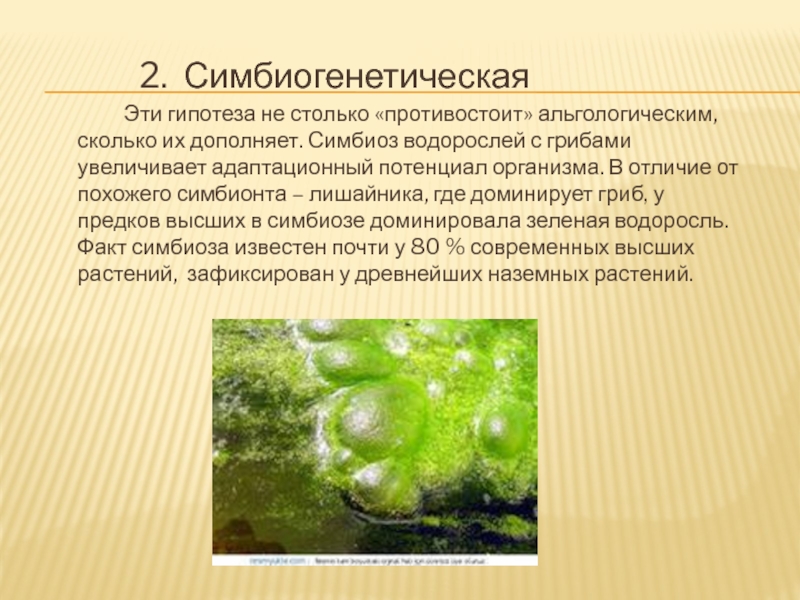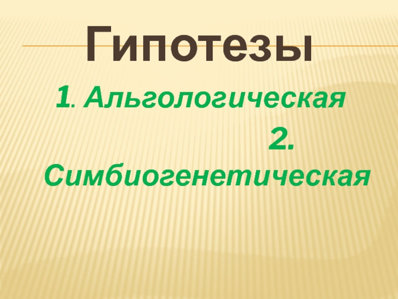 Гипотезы 1. Альгологическая 2.Симбиогенетическая
