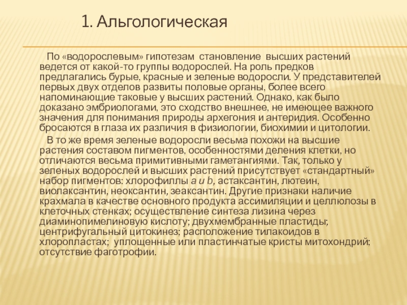 Презентация, доклад на тему Гипотезы происхождения высших растений