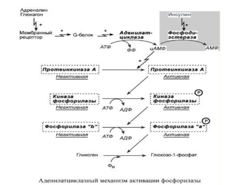 Действие инсулина и глюкагона на метаболизм глюкозы в печени