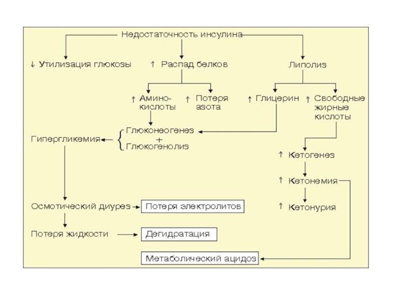 Слайд 16 Биохимические нарушения при НЕДОСТАТОЧНОСТИ инсулина включают: