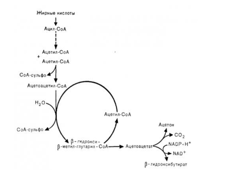 3. Кетонемию и кетонурию обусловленную тем, что дефицит глюкозы в клетках приводит к более интенсивному использованию в качестве источника энергии липидов.