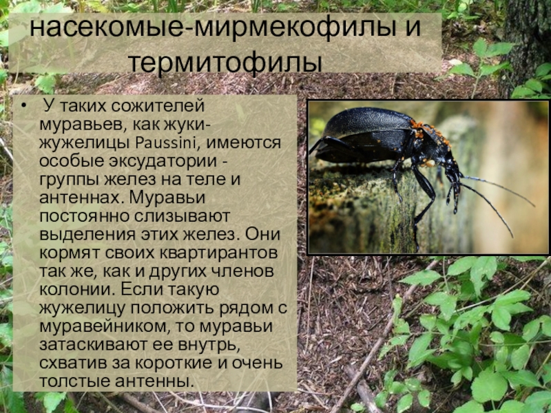 Слайд 15насекомые-мирмекофилы и термитофилы