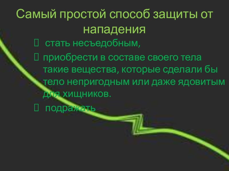 своего тела такие вещества, которые сделали бы тело непригодным или даже ядовитым для хищников.