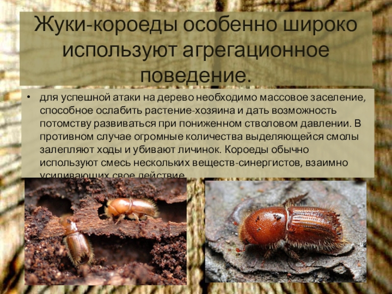 Слайд 8Жуки-короеды особенно широко используют агрегационное поведение.