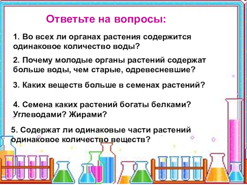 5. Содержат ли одинаковые части растений одинаковое количество веществ?