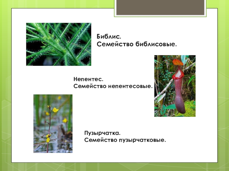 Слайд 9Насчитывается 500 видов хищных растений, относящихся к 6 семействам: