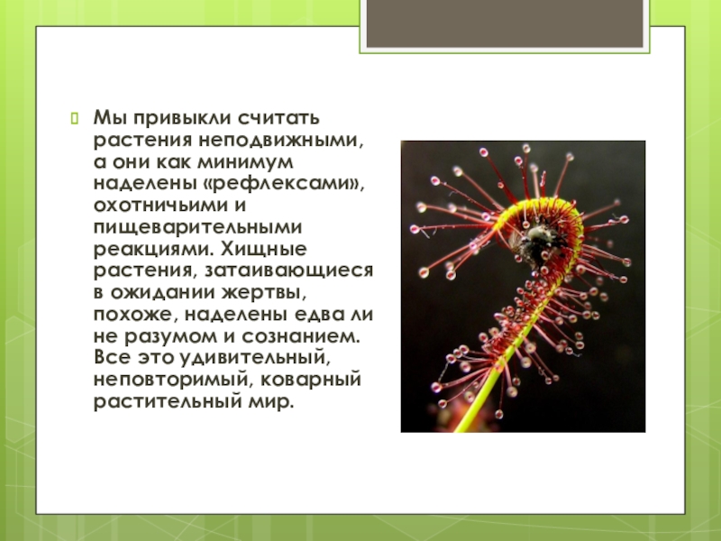 разнообразии растительного мира, о существовании таких необычных и загадочных растений, об их особенностях.