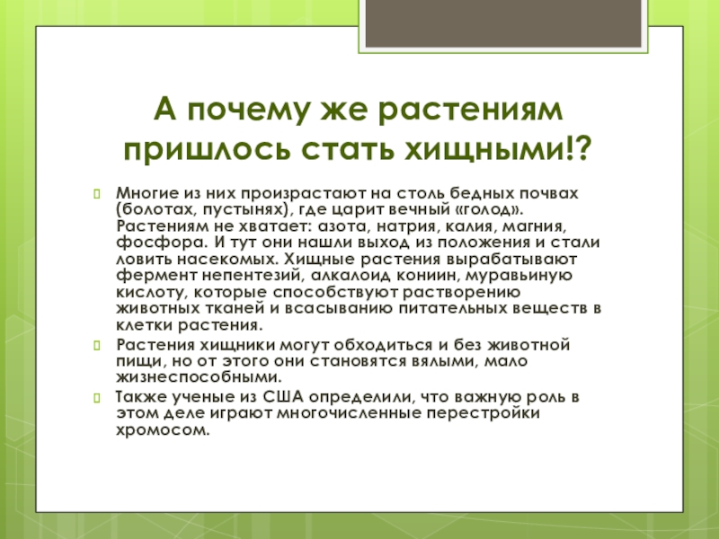 Слайд 14А почему же растениям пришлось стать хищными!?