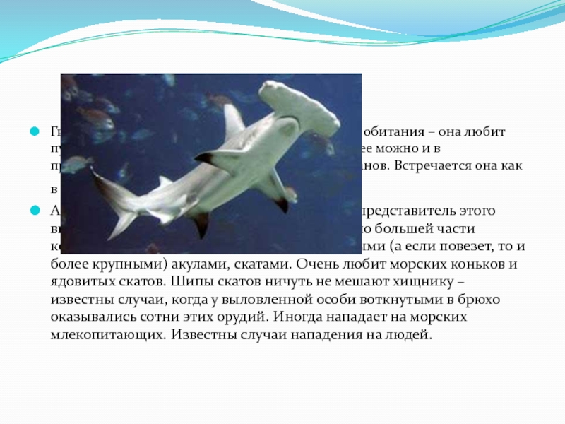 Слайд 3Гигантская акула-молот не имеет четкого ареала обитания – она любит путешествовать