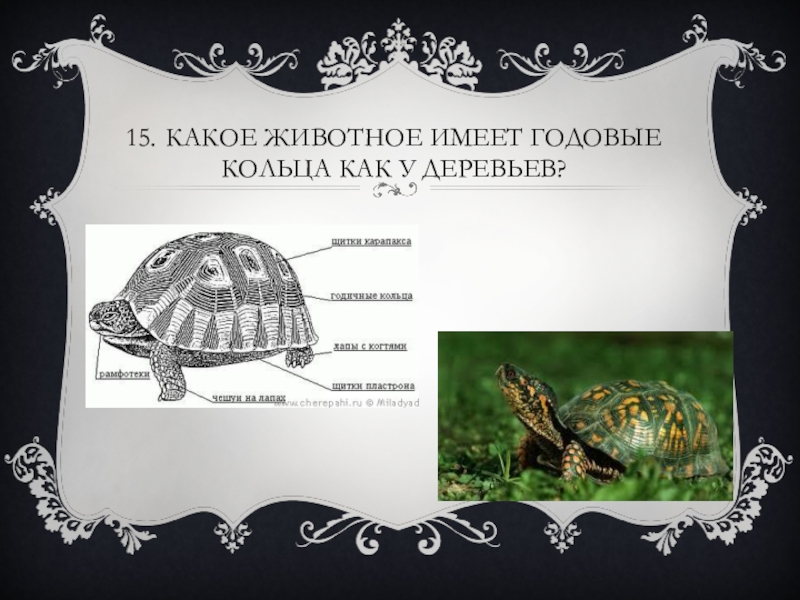 Слайд 1615. Какое животное имеет годовые кольца как у деревьев?