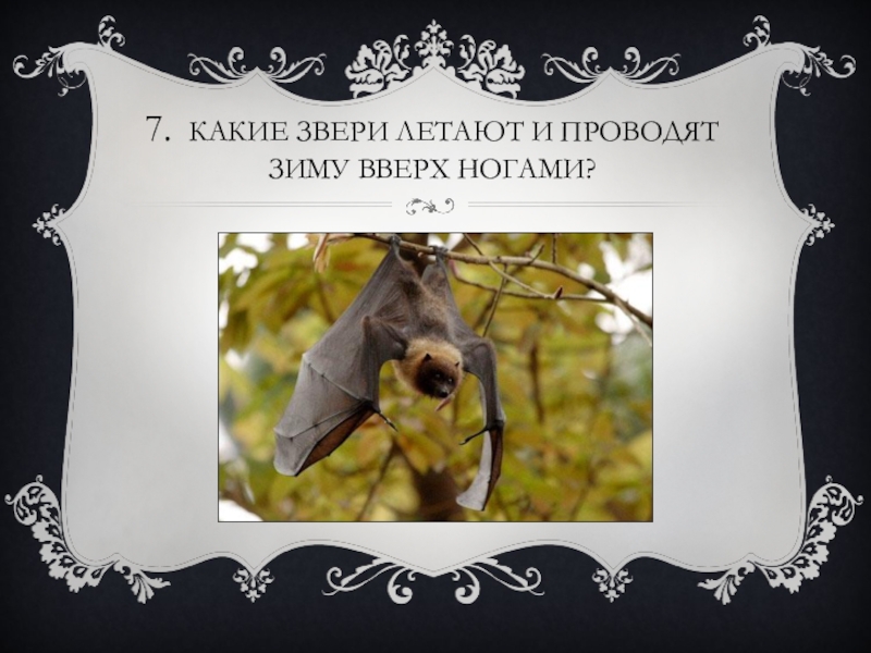 7.	Какие звери летают и проводят зиму вверх ногами?