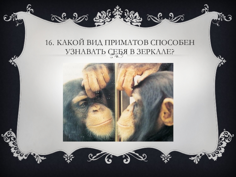 Слайд 1716. Какой вид приматов способен узнавать себя в зеркале?