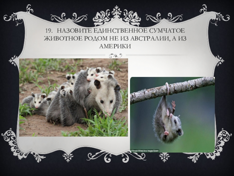 Слайд 2019. Назовите единственное сумчатое животное родом не из Австралии, а из Америки