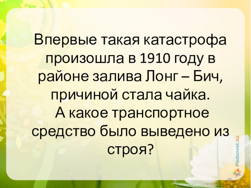 Слайд 29Впервые такая катастрофа произошла в 1910 году в районе залива Лонг