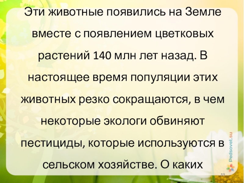 Слайд 53Эти животные появились на Земле вместе с появлением цветковых растений 140