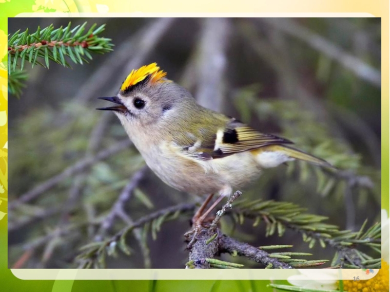 Слайд 14Какие птицы получили свое название благодаря золотой шапочке на голове?