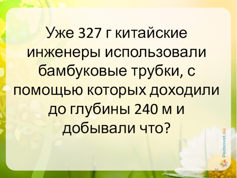 Слайд 56Уже 327 г китайские инженеры использовали бамбуковые трубки, с помощью которых