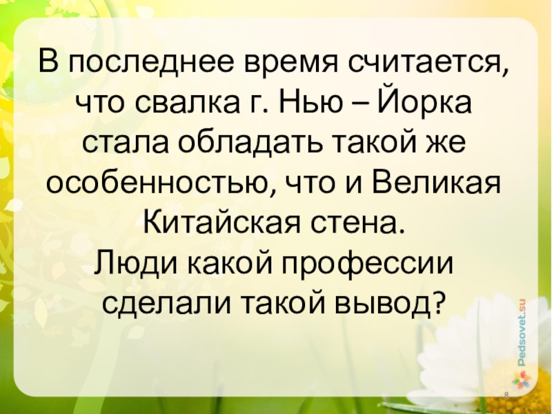Слайд 8В последнее время считается, что свалка г. Нью – Йорка стала