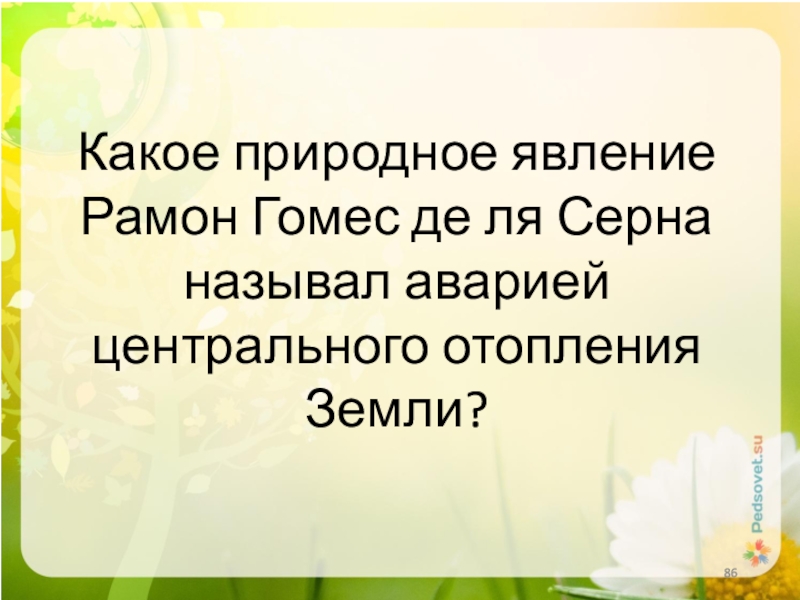 Слайд 86Какое природное явление Рамон Гомес де ля Серна называл аварией центрального