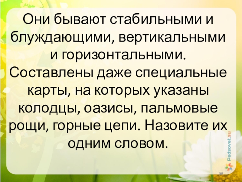 Слайд 38Они бывают стабильными и блуждающими, вертикальными и горизонтальными. Составлены даже специальные