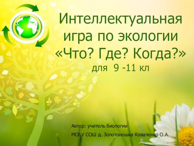 Слайд 1Интеллектуальная игра по экологии «Что? Где? Когда?»