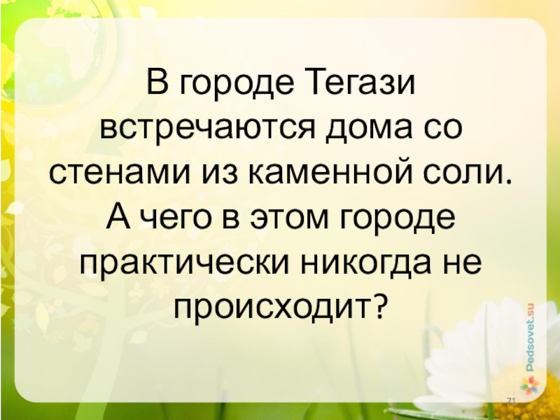 Слайд 71В городе Тегази встречаются дома со стенами из каменной соли. А