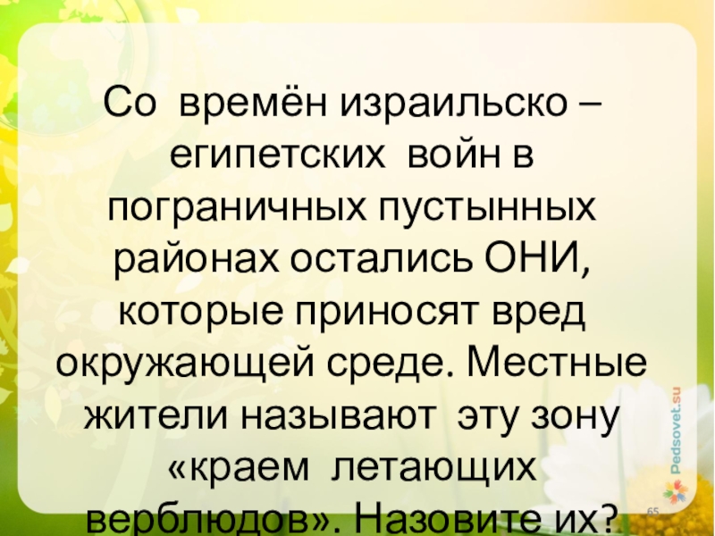Слайд 65Со времён израильско – египетских войн в пограничных пустынных районах остались