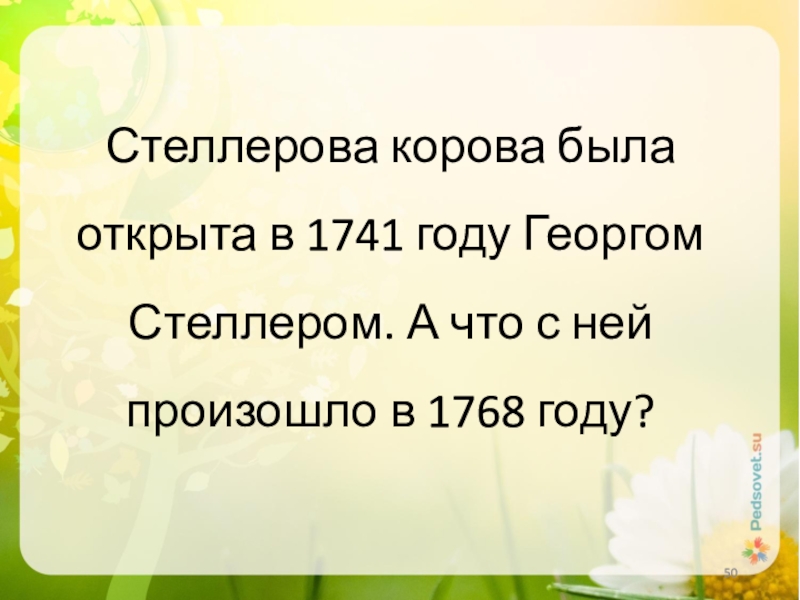 Слайд 50Стеллерова корова была открыта в 1741 году Георгом Стеллером. А что
