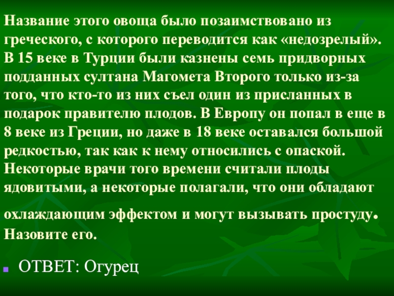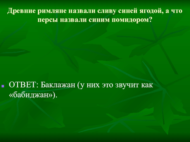 ОТВЕТ: Баклажан (у них это звучит как «бабиджан»).