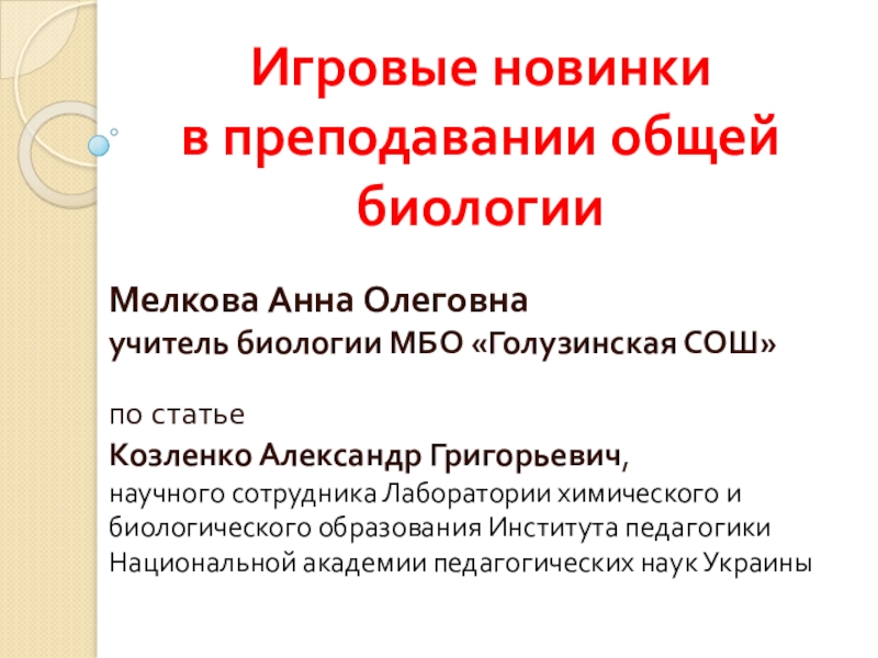 научного сотрудника Лаборатории химического и биологического образования Института педагогики Национальной академии педагогических наук Украины