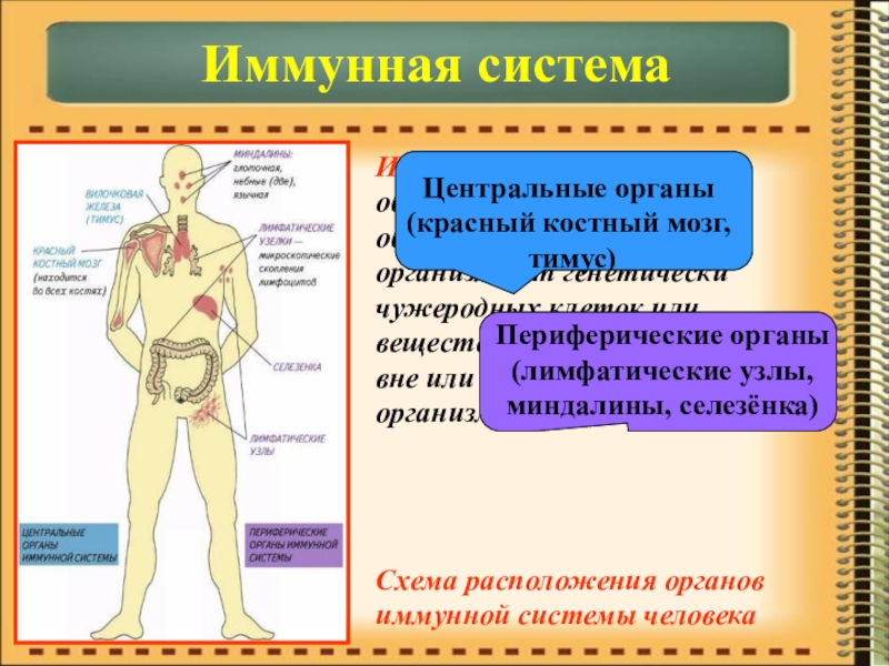 Лимфоциты (Т и В) – имеют на поверхности клеток рецепторы, распознающие «врага», образовывают комплексы «антиген- антитело» и обезвреживают антигены.