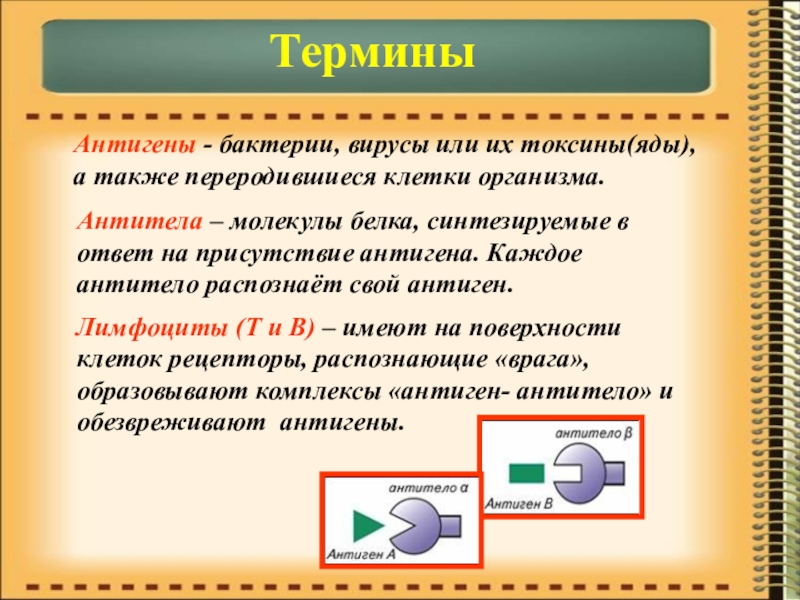 Антитела – молекулы белка, синтезируемые в ответ на присутствие антигена. Каждое антитело распознаёт свой антиген.