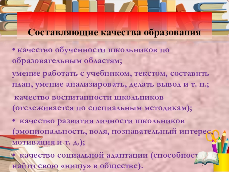 1.Качество успеваемости – качество знаний, умений, навыков.