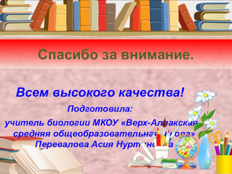 учитель биологии МКОУ «Верх-Аллакская средняя общеобразовательная