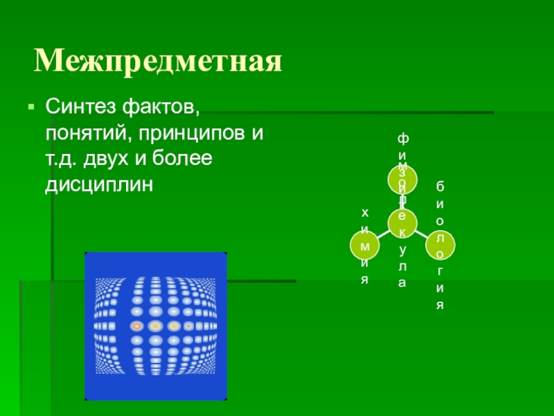 МежпредметнаяСинтез фактов, понятий, принципов и т.д. двух и более дисциплин