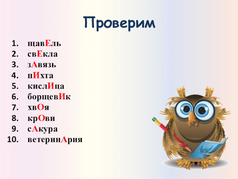 Проверим щавЕльсвЕклазАвязьпИхтакислИцаборщевИкхвОякрОвисАкураветеринАрия