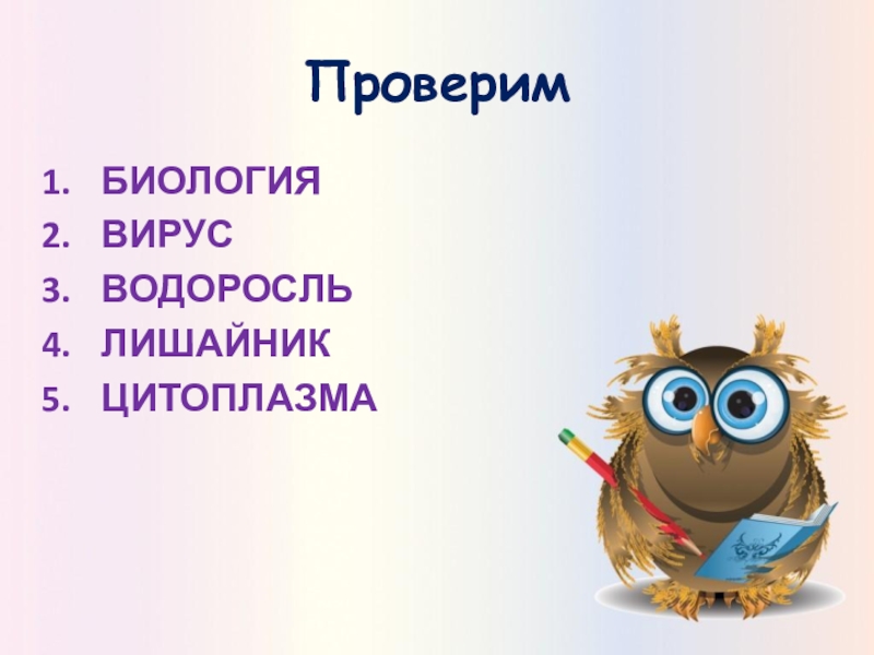 ПроверимБИОЛОГИЯВИРУСВОДОРОСЛЬЛИШАЙНИКЦИТОПЛАЗМА