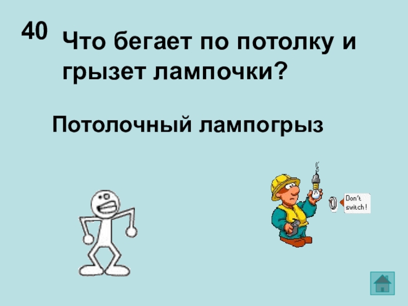 40 Что бегает по потолку и грызет лампочки?Потолочный лампогрыз