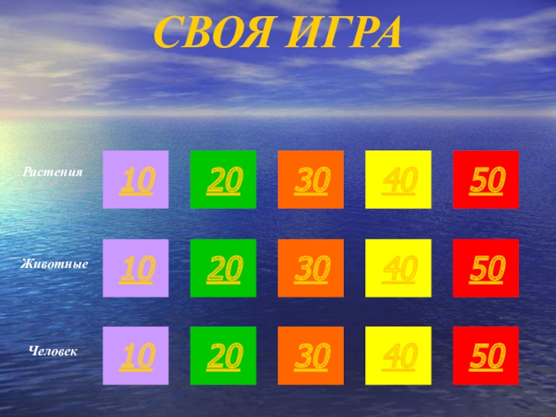 101010403020302050504030205040СВОЯ ИГРАРастенияЖивотныеЧеловек50