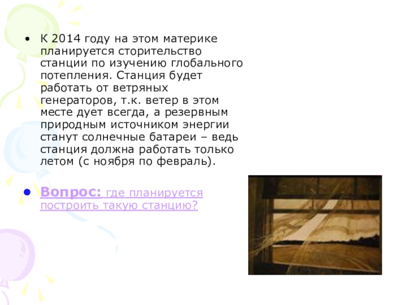 Слайд 19К 2014 году на этом материке планируется сторительство станции по изучению