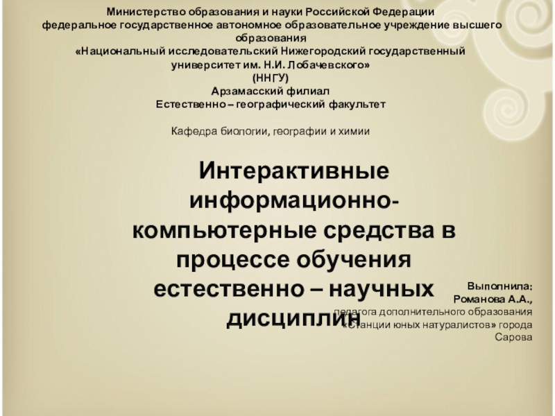 Интерактивные информационно-компьютерные средства в процессе обучения естественно – научных дисциплин