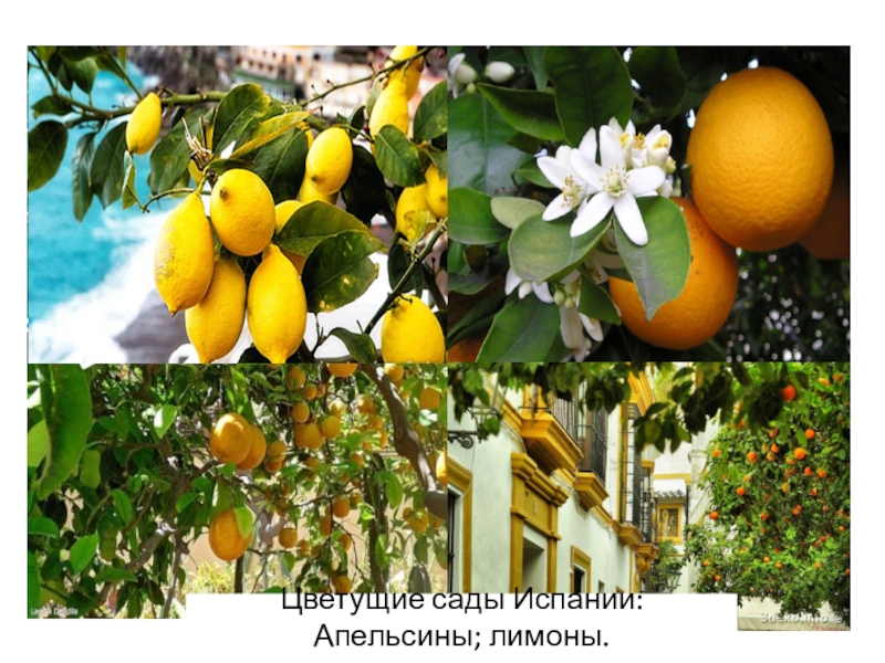Слайд 8Цветущие сады Испании: Апельсины; лимоны.
