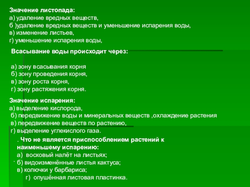 б) передвижение воды и минеральных веществ ,охлаждение растения