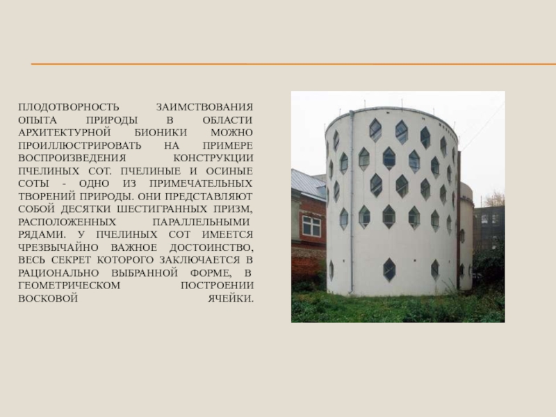 Слайд 8Плодотворность заимствования опыта природы в области архитектурной бионики можно проиллюстрировать на