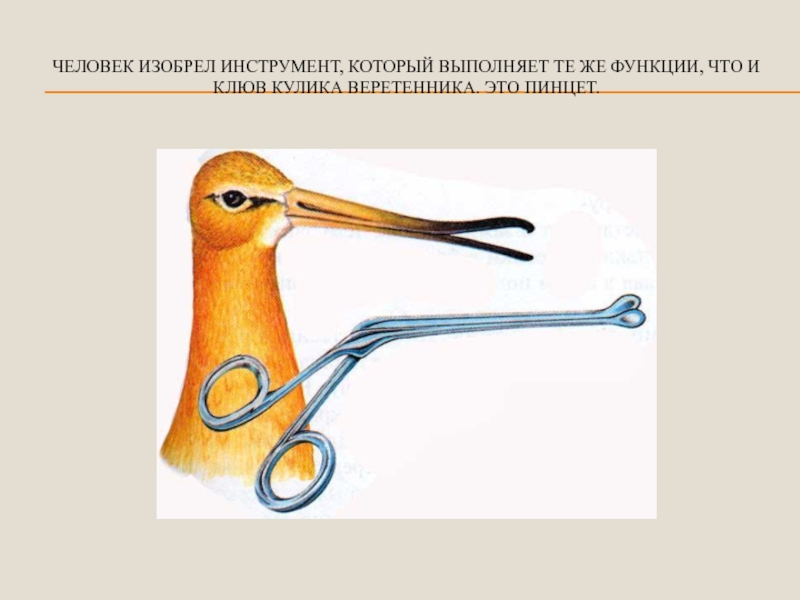 Слайд 11Человек изобрел инструмент, который выполняет те же функции, что и клюв