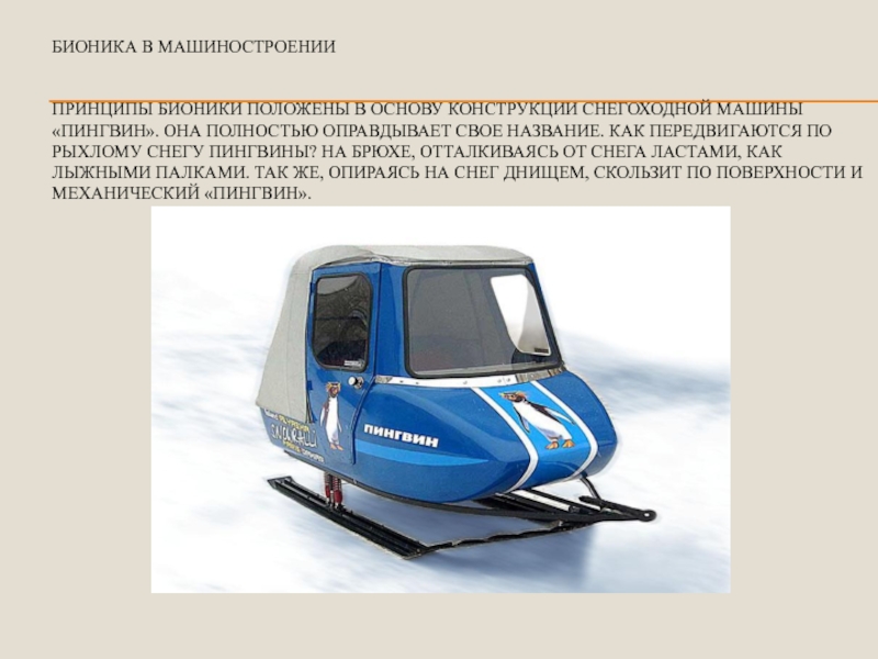 Принципы бионики положены в основу конструкции снегоходной машины «Пингвин».